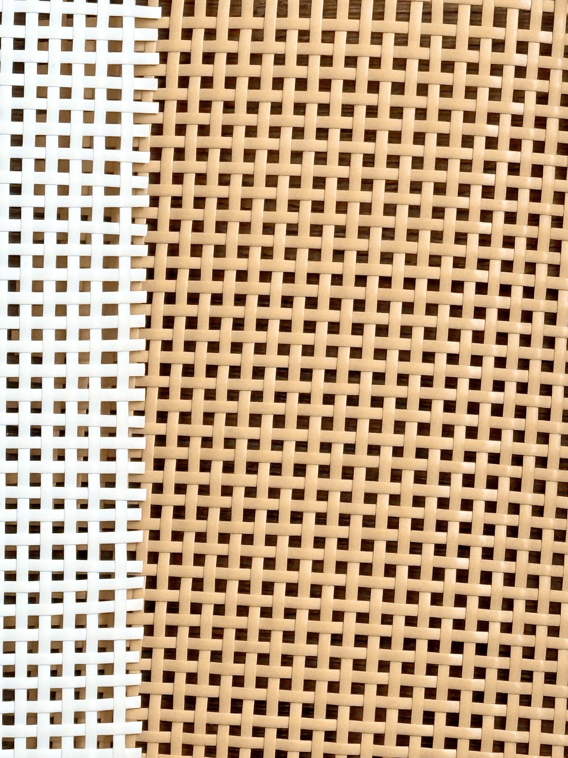 Ratan sintetic culoare naturală, cu model pătrat, rezistent și durabil, ideal pentru diverse proiecte de amenajare interioară și exterioară. Acest material modern imită frumusețea ratanului natural, dar rezistă mai mult în timp, nu necesită întreținere și suportă umezeala, razele UV și variațiile de temperatură.